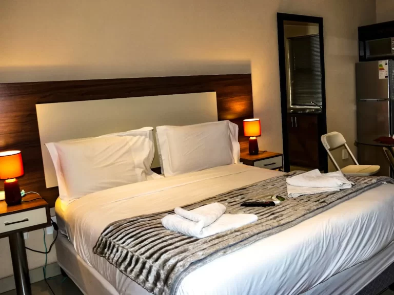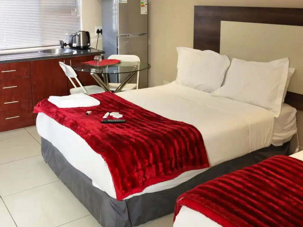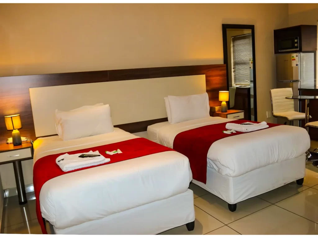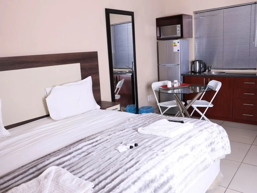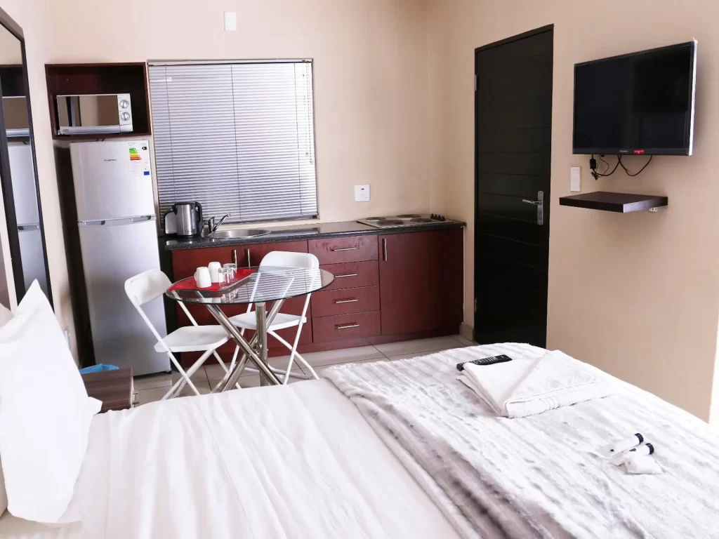 Each room is a haven of tranquility, equipped with a kitchenette featuring a fridge, kettle, and microwave, allowing you to savor the convenience of home-cooked meals or late-night snacks. Unwind after a long day with your favorite shows on the in-room TV, complete with a curated selection of DStv channels.